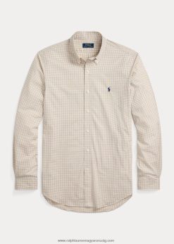 karcsú szabású gingham stretch poplin ing 268048814 férfiak Ralph Lauren vintage khaki/fehér
