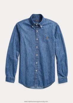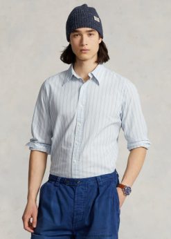 klasszikus fazonú csíkos vászon tábori ing 2680481009 férfiak Ralph Lauren fehér/királyi multi