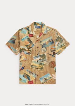 klasszikus fazonú kockás poplin tábori ing 268048767 férfiak Ralph Lauren indigó khaki