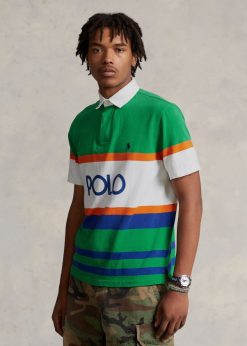 klasszikus szabású csíkos jersey rögbi ing 268048797 férfiak Ralph Lauren sportos zöld multi