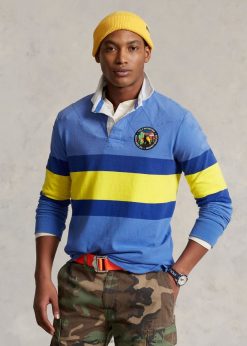 klasszikus szabású csíkos jersey rögbi ing 268048638 férfiak Ralph Lauren leánykő kék multi