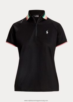 személyre szabott, negyedcipzáras pólóing 2680489400 nők Ralph Lauren fekete/sivatagi rózsa