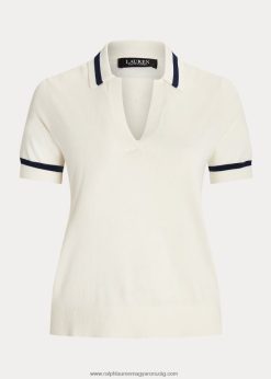 színblokkos merinó-selyem pólópulóver 2680483478 nők Ralph Lauren törtfehér/luxus navy multi