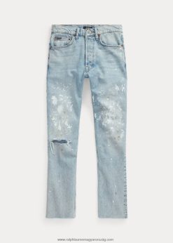 160 skinny farmerünket Olaszországban készítik, sztreccsbe integrált farmerből, Japánból származnak, amelyet sötét kőmosással kezelnek, majd egyedileg borítékolnak simítással és kézi csiszolással. ezt a középen emelkedő stílust az érme zsebében bőr füllel, hátul pedig “ralph lauren” dombornyomott bőrfolttal fejezték be, mindegyiket antikolt arany tónusú szegecsekkel díszítették.