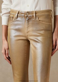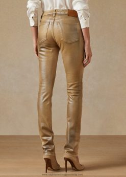 Olaszországban, pamut farmerből készült 160-as skinny farmer közepes magassággal és vékony szárral készült. A ralph lauren finom olasz kézművesség iránti elkötelezettségét bemutatva ezeket a farmereket először ruhákra festik, két különböző színű pigmenttel permetezik, majd végül szabálytalan fóliával részletezik, hogy lenyűgöző gyöngyházfényű felületet érjenek el.