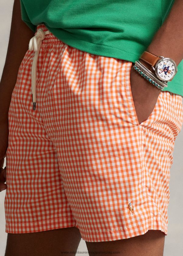 5,75 hüvelykes utazó klasszikus úszónadrág 268048452 férfiak Ralph Lauren vitorlás narancssárga gingham