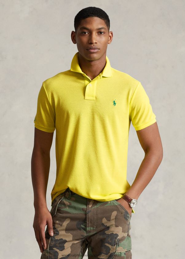 vékony szabású hálós kényelmes póló 26804821 férfiak Ralph Lauren naplemente zöld/rózsaszín