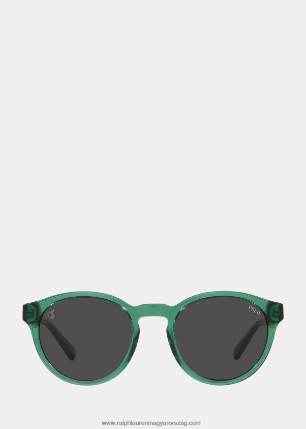 A polo ralph lauren bio-alapú anyagokból készült új szemüvegkollekciójának része, ezek a panto napszemüvegek a halántéknál zöld színnel díszített jellegzetes pónikat tartalmaznak.