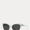 A póló macskaszemű napszemüveg ikonikus hollywoodi csillogás, csábító sziluettje szögletes peremmel. ez a pár polírozott acetáttal készült, és a templomok emblémájával van ellátva.