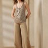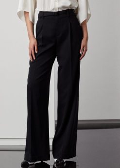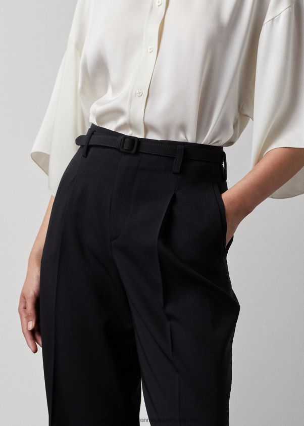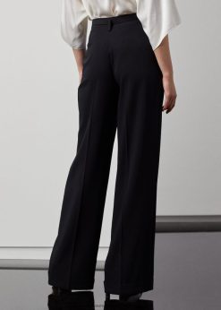 Ikonikus Stamford nadrágunk szélesebb szárú változata, az acklie a ralph lauren jellegzetes férfiruházati ihletésű női nadrágja, mivel elülső ráncokkal és éles lábráncokkal készült. gyapjú gabardin szövete, amelyet egy tisztelt olasz malomban szőttek, puha kezet és szép kendőt eredményez. a kis négyzet alakú csattal megemelt önöv határozottságot kölcsönöz a deréknak, míg a magas szabás erős nőies esztétikát idéz.