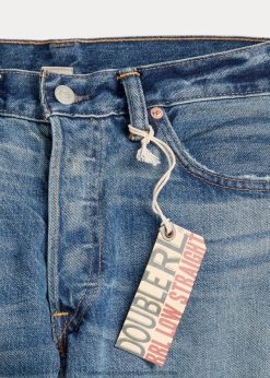 Amerikában készült, egyenes szabású farmernadrág, 16,25 oz-tól. japán jobb oldali twill. dupla rrl legmélyebb indigó árnyalatába festve, piros-kék árnyalattal. kézzel szorongatva.