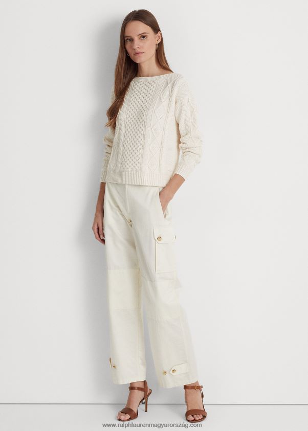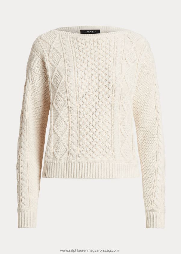 arán kötött pamut csónaknyakú pulóver 2680483949 nők Ralph Lauren mascarpone krém