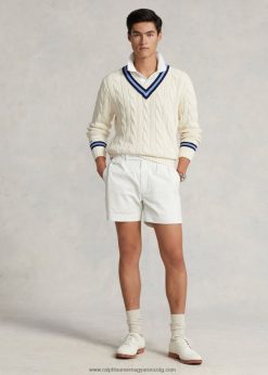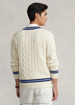 az ikonikus krikett pulóver 2680488380 férfiak Ralph Lauren krémszínű, sötétkék csíkkal