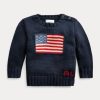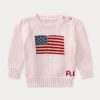 A ralph lauren ikon kisméretű változata, ez a fésült pamutpulóver elöl intarziakötésű történelmi amerikai zászlóval rendelkezik.