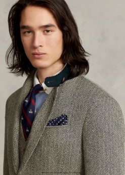 az rl67 lenkeverék halszálkás kabát 2680481092 férfiak Ralph Lauren fekete és krém