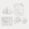 A prémium kategóriás biopamutból készült interlock készlet sapkát, vállpántot, ujjatlan ujjakat és cipókat tartalmaz, amelyek az ajándékozáshoz megfelelő borítéktáskában érkeznek.