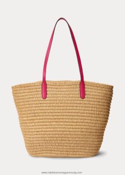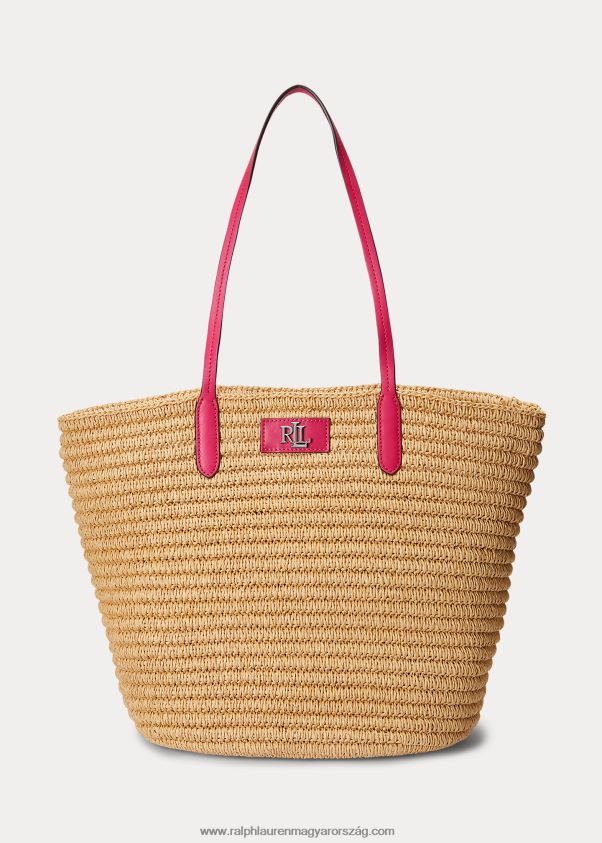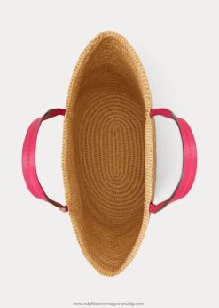 bőr borítású szalma nagyméretű brie táska 2680485422 nők Ralph Lauren natúr/sport rózsaszín