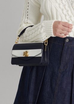 bőr kis tayler crossbody táska 2680485450 nők Ralph Lauren finomított sötétkék/fehér csík