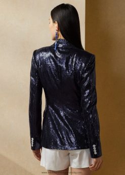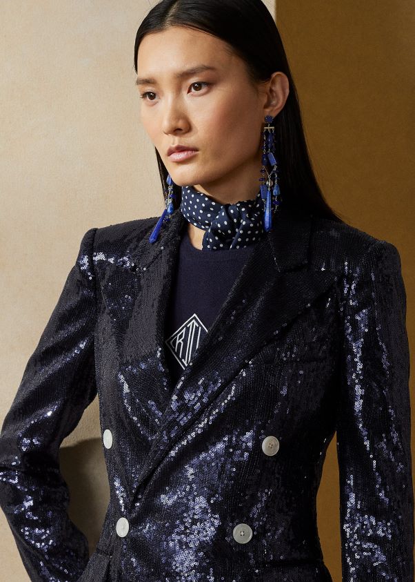 A 19. századi Nagy-Britanniában debütált férfi sportstílus, a kétsoros kabát ralph lauren egyik maradandó jellegzetessége. az ikonikus camden ezen verzióját fényes flitterekkel és kontrasztos, valódi gyöngyház gombokkal díszítették, amelyek megragadják a 2023-as nyár amerikai riviéra esztétikáját.