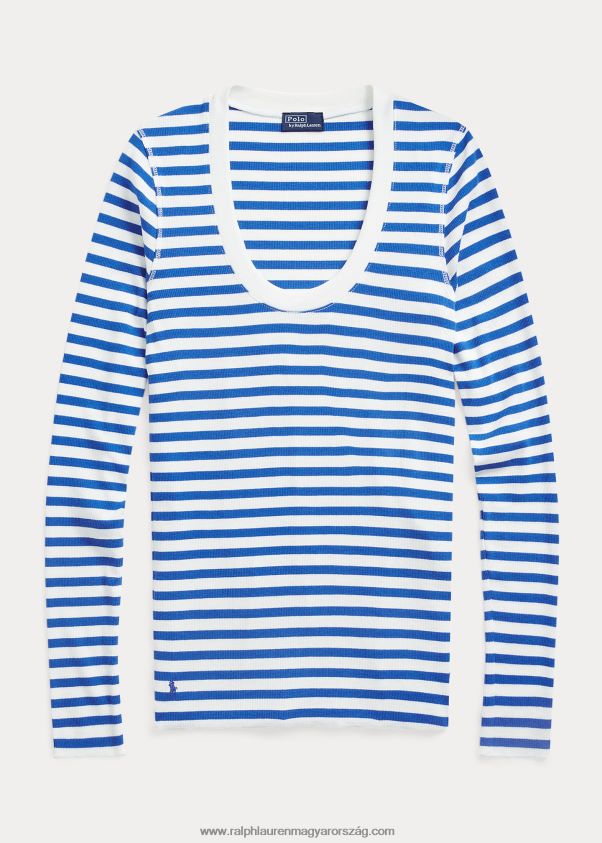 csíkos bordázott gombóc póló 2680483055 nők Ralph Lauren fehér/fürdő királyi