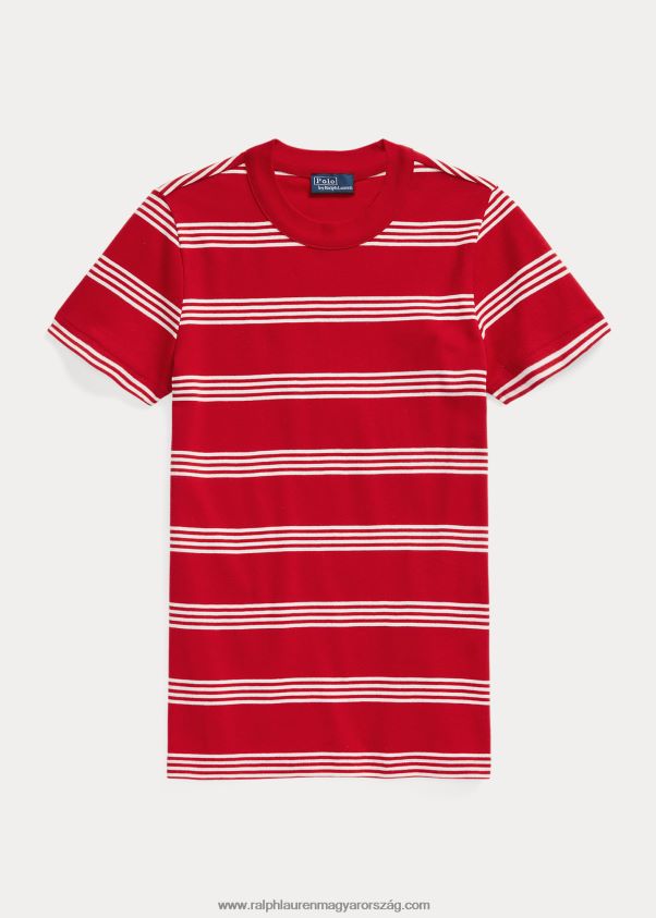 csíkos bordázott pamut nyakú póló 2680482920 nők Ralph Lauren 2000 rl piros/fehér