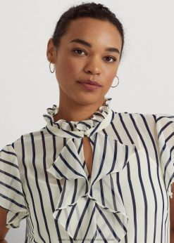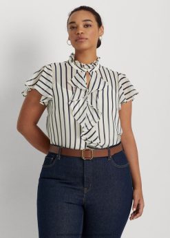csíkos fodros szegélyű sifonblúz 2680484655 nők Ralph Lauren pergamen krém/tengerészet
