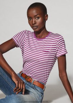 csíkos nyakú zsebes póló 2680489130 nők Ralph Lauren fényes bogyó/törtfehér