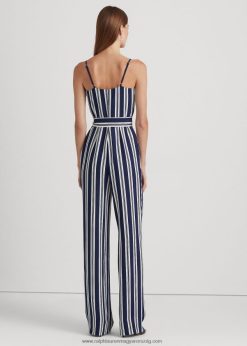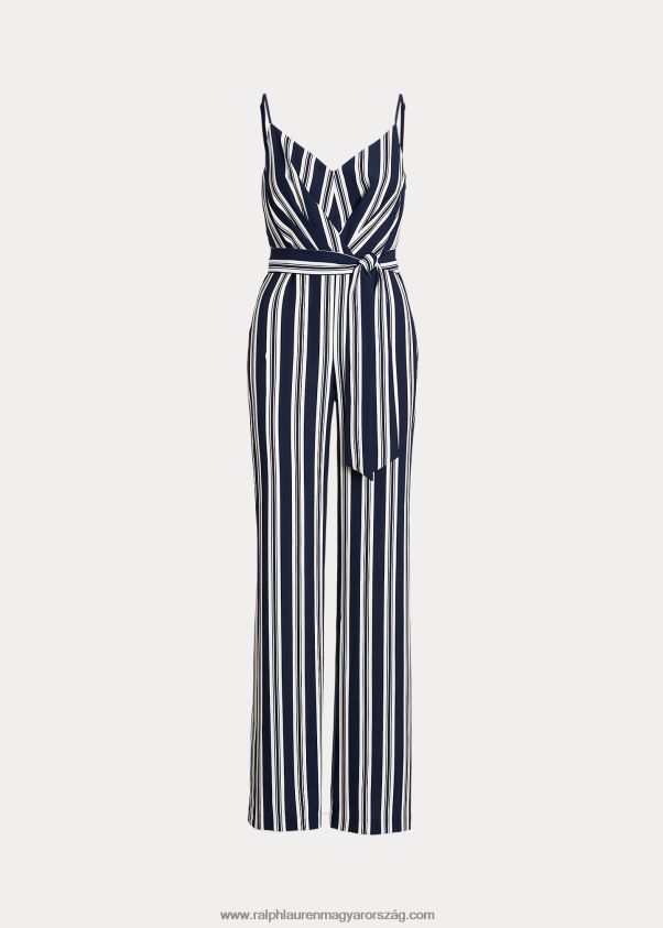 csíkos öves krepp jumpsuit 2680484858 nők Ralph Lauren sötétkék/fehér