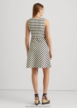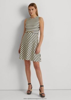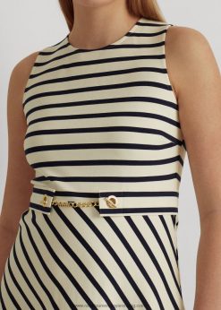 csíkos öves ponte ruha 2680484002 nők Ralph Lauren mascarpone krém/tengerszín