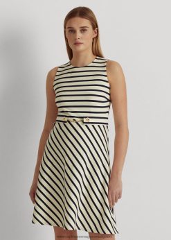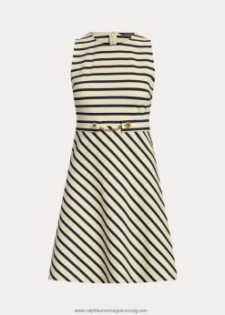 csíkos öves ponte ruha 2680484834 nők Ralph Lauren mascarpone krém/tengerszín