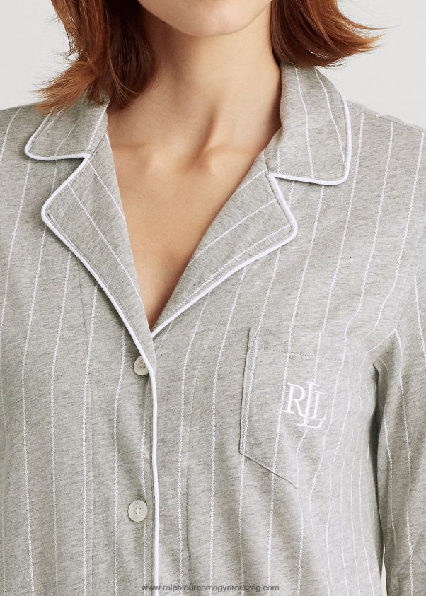 csíkos pamut alvóing 2680484230 nők Ralph Lauren szürke csík