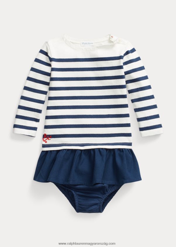 csíkos pamut dzsörzé ruha & bloomer 2680488235 baba Ralph Lauren deckwash fehér multi