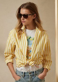 csíkos pamut ing 2680489339 nők Ralph Lauren klasszikus sárga/fehér