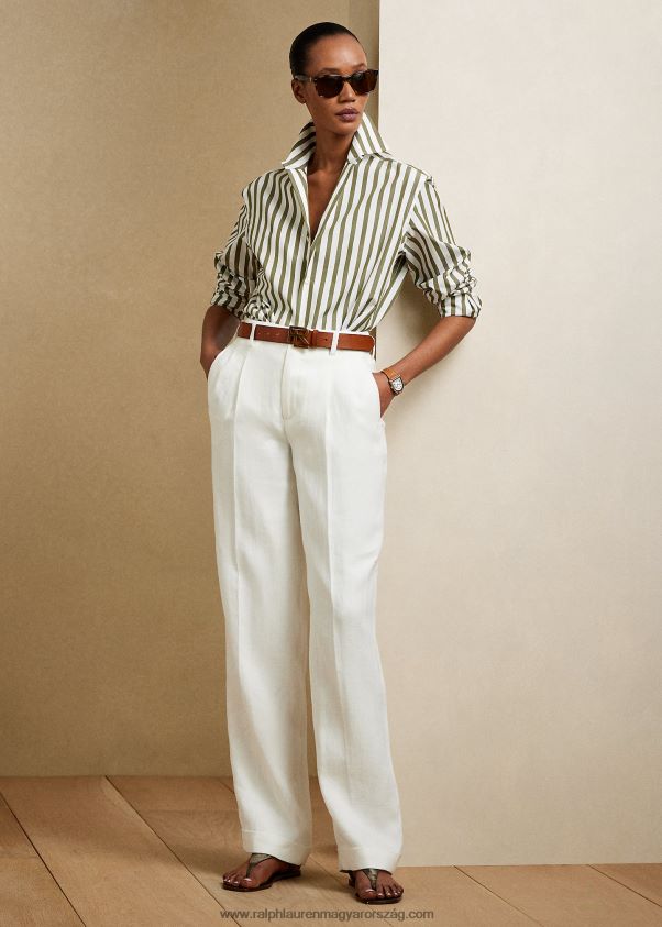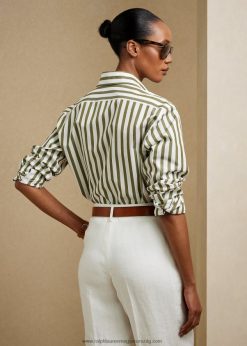 csíkos pamut ing 2680489342 nők Ralph Lauren olíva/fehér
