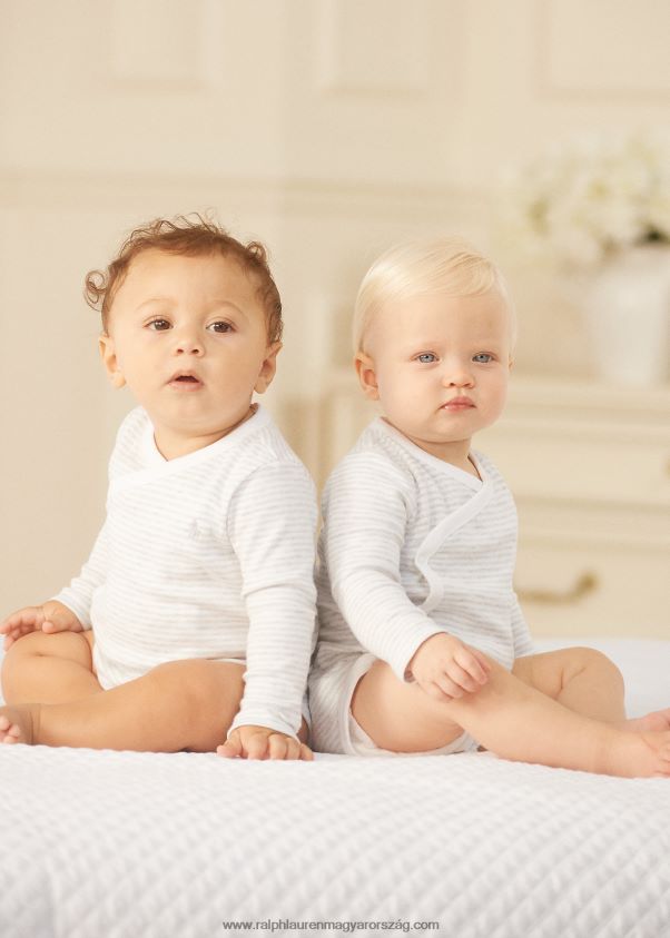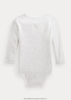 csíkos pamut V-nyakú body 2680488163 baba Ralph Lauren kvarc hanga/fehér
