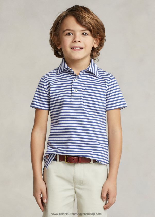 csíkos pamutdzsörzé póló 2680485628 gyerekek Ralph Lauren királyi haditengerészet/fehér
