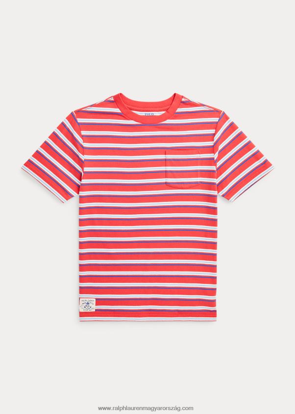 csíkos pamutdzsörzé zsebpóló 2680486125 gyerekek Ralph Lauren jobboldali piros multi
