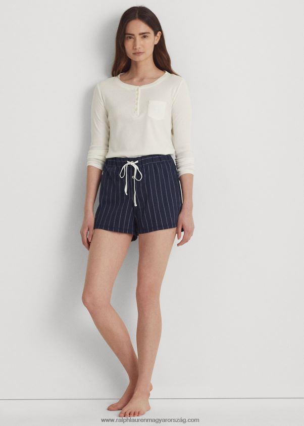 csíkos pamutkeverék aludj röviden 2680484223 nők Ralph Lauren sötétkék csík