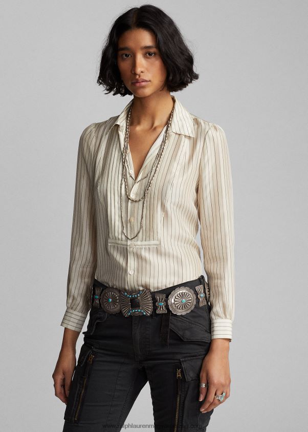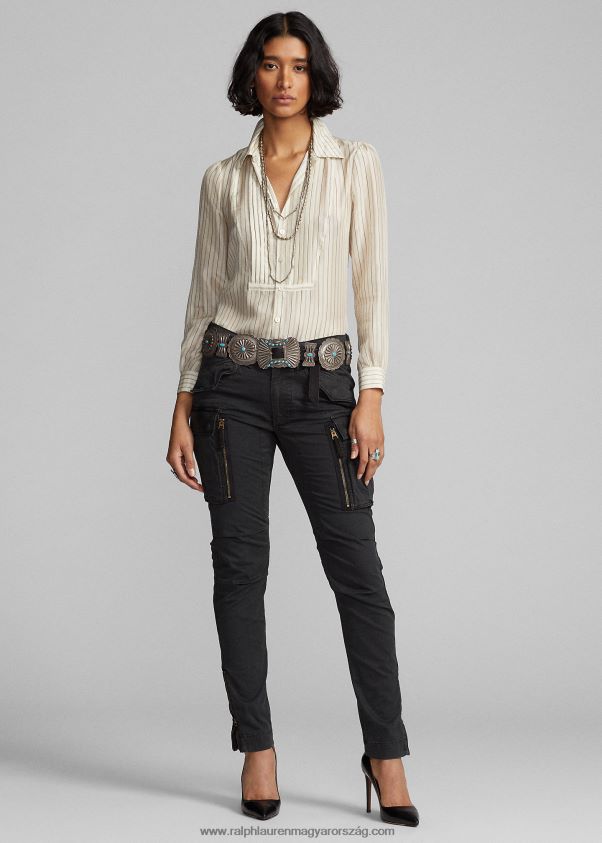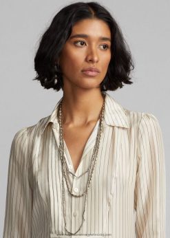 csíkos selyem megkötős blúz 2680483633 nők Ralph Lauren krém/fekete