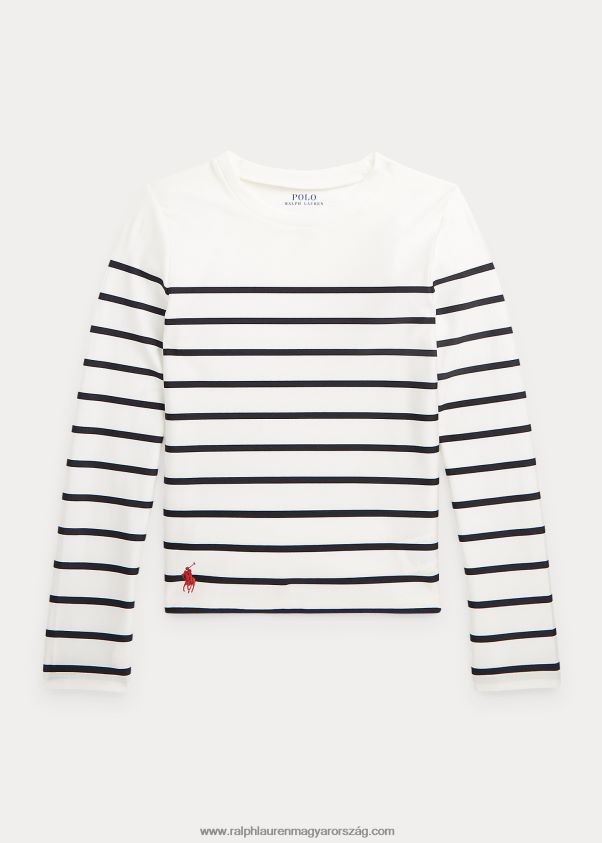 A tengeri ihletésű csíkokkal és jellegzetes pónival ez a sztreccs keverékű bőrkiütésvédő okos réteg medencés napokon és tengerparti kirándulásokon.