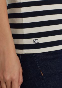 csíkos sztreccs pamut póló 2680483998 nők Ralph Lauren finomított sötétkék/krém