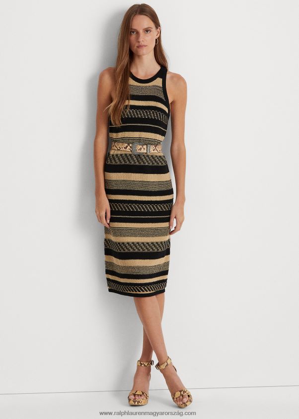 csíkos ujjatlan pulóverruha 2680484852 nők Ralph Lauren fekete/barna