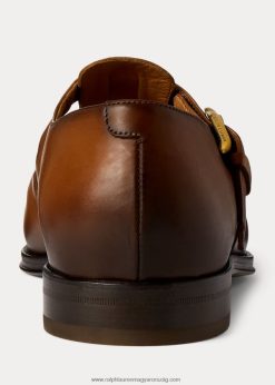 Ennek az olasz gyártmányú szandálnak az időtlen sziluettjét a kézzel csiszolt borjúbőr adja a gazdag, dimenziós tónus érdekében. Ralph Lauren lovas örökségét idéző borjúbőr pánttal van kiegészítve a vampon, amely sárgaréz kengyelcsattal rögzíthető.