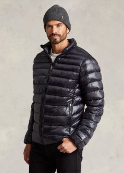 csomagolható vízlepergető kabát 2680481898 férfiak Ralph Lauren fekete fényes
