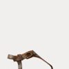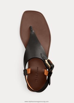A ralph lauren welington kollekció része, a delancie időtlen tanga sziluettet emel ki az örökölt ralph lauren kódokkal, mint egy csiszolt arany tónusú kengyelcsat, amely szegecses bőrszíjjal és tartóval rögzíthető. A szögletes, nyitott orrú lapos szandálok háromszög alakú pánttal rendelkeznek, amelyet egyetlen darab csiszolt, teljes borjúbőrből vágtak ki, és a bőr külső talpa gumibefecskendezéssel készült, hogy nagyobb rugalmasságot biztosítson, kiemelve Mr. Lauren elkötelezettsége a finom olasz kézművesség iránt.