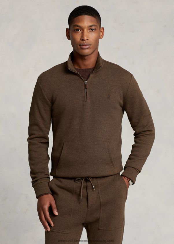 dupla kötésű hálós negyedcipzáras pulóver 2680481065 férfiak Ralph Lauren szerecsendió-barna hanga