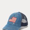 báránybőr szegélyű vászon ötpaneles sapka 2680482223 férfiak Ralph Lauren oliva éjszaka/angol barna