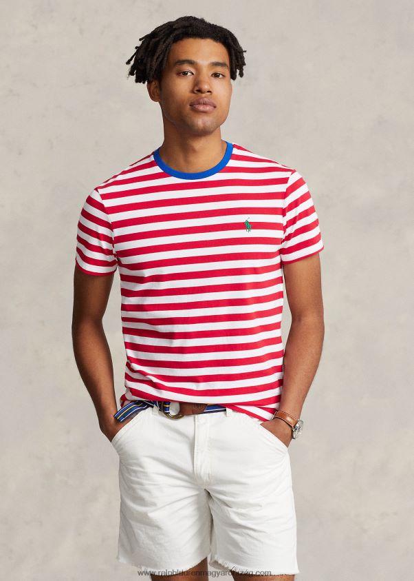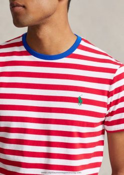 egyedi karcsú szabású csíkos dzsörzé póló 268048520 férfiak Ralph Lauren pandora piros/fehér