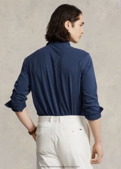 vékony szabású hálós divatos póló 26804810 férfiak Ralph Lauren kikötő sziget kék/tengerészet
