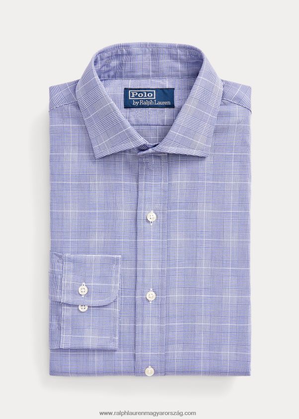 egyedi szabású glen kockás twill ing 268048836 férfiak Ralph Lauren 5089 óceán kék/fehér